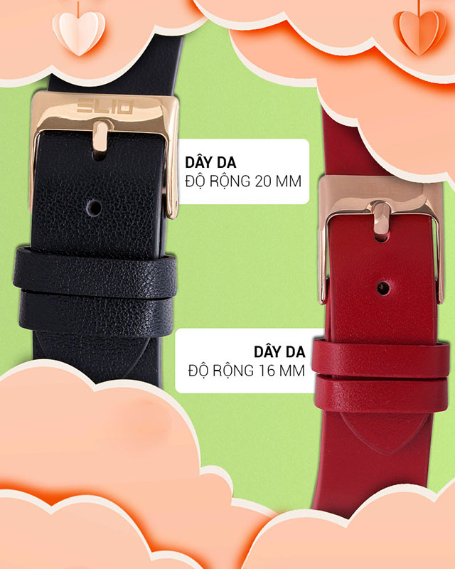 - Đồng hồ nữ sở hữu đường kính mặt 33 mm, độ rộng dây 16 mm, phù hợp với những bạn nữ có cổ tay lớn (chu vi khoảng từ 13.5 - 17.5 cm)