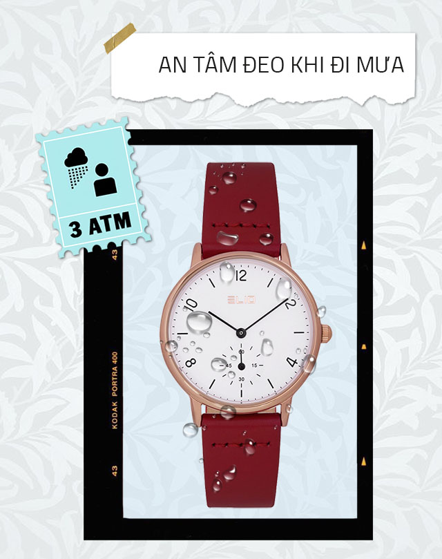 - Chỉ số chống nước 3 ATM: Thoải mái đeo chiếc đồng hồ nữ này khi đi mưa, rửa tay, không mang khi tắm, bơi lội, lặn.