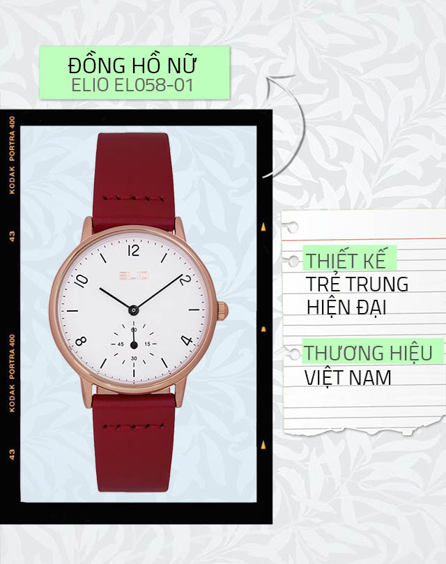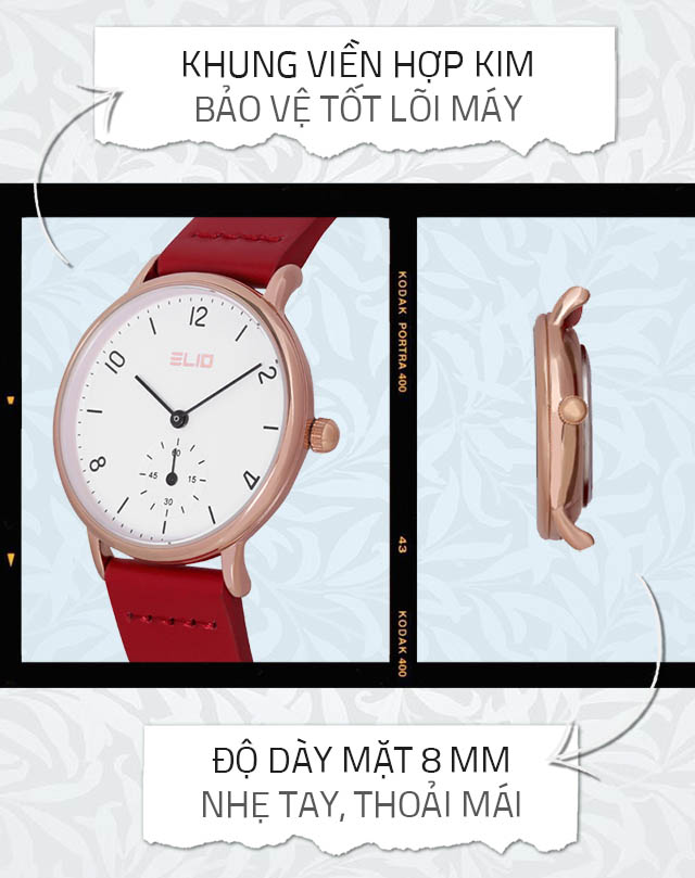 - Đồng hồ ELIO Nàng Thơ 33 mm Nữ EL058-01 có đường kính mặt 33 mm, độ rộng dây 16 mm, phù hợp với cổ tay có chu vi khoảng từ 13.5 đến 17.5 cm.