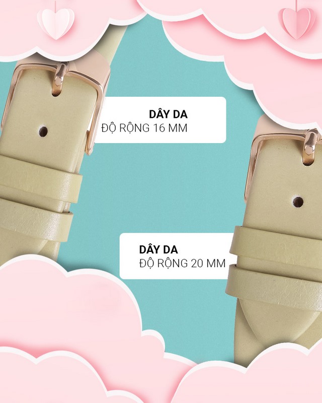 - Đồng hồ nữ sở hữu đường kính mặt 33 mm, độ rộng dây 16 mm, phù hợp với những bạn nữ có kích thước cổ tay lớn (chu vi khoảng 13.5 - 17.5 cm)