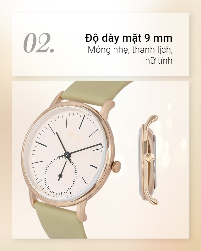 - Đồng hồ Elio với kiểu dáng, mẫu mã năng động, trẻ trung phù hợp với mọi lứa tuổi, đồng thời đồng hồ Elio còn mang vẻ đẹp sang trọng, lịch lãm. Đặc biệt đồng hồ Elio còn sử dụng bộ máy của Nhật Bản với chất lượng và độ bền cao.