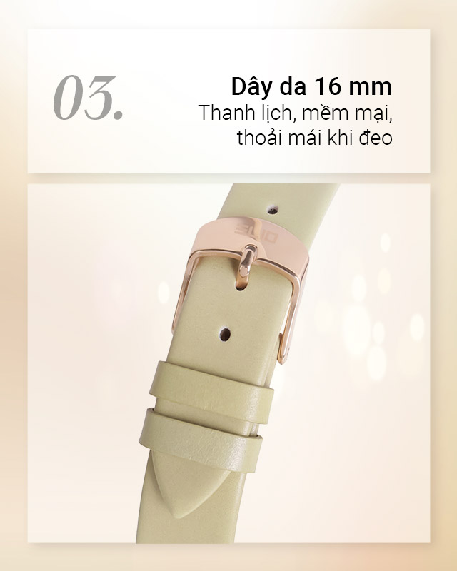 - Dây da mềm nhẹ, ôm sát cổ tay, cho cảm giác dễ chịu khi mang, khung viền hợp kim cứng cáp, bảo vệ an toàn các chi tiết bên trong.