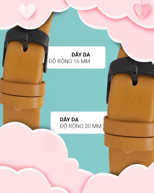 - Đồng hồ nữ sở hữu đường kính mặt 33 mm, độ rộng dây 16 mm, phù hợp với những bạn nữ có cổ tay lớn (chu vi khoảng từ 13.5 - 17.5 cm)