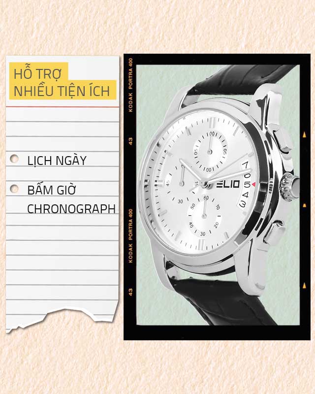 - Đồng hồ Elio với kiểu dáng, mẫu mã năng động, trẻ trung phù hợp với mọi lứa tuổi, đồng thời đồng hồ Elio còn mang vẻ đẹp sang trọng, lịch lãm. Đặc biệt đồng hồ Elio còn sử dụng bộ máy của Nhật Bản với chất lượng và độ bền cao.