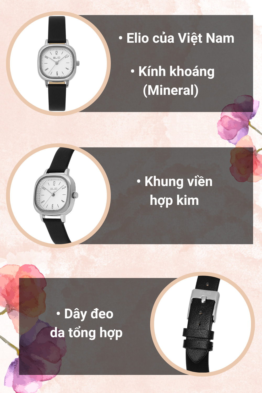 - Đồng hồ Elio với kiểu dáng, mẫu mã năng động, trẻ trung phù hợp với mọi lứa tuổi, đồng thời đồng hồ Elio còn mang vẻ đẹp sang trọng, lịch lãm. Đặc biệt đồng hồ Elio còn sử dụng bộ máy của Nhật Bản với chất lượng và độ bền cao.