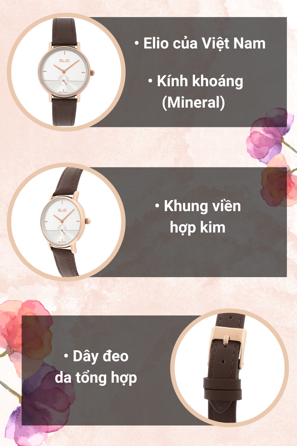 - Đồng hồ Elio với kiểu dáng, mẫu mã năng động, trẻ trung phù hợp với mọi lứa tuổi, đồng thời đồng hồ Elio còn mang vẻ đẹp sang trọng, lịch lãm. Đặc biệt đồng hồ Elio còn sử dụng bộ máy của Nhật Bản với chất lượng và độ bền cao.