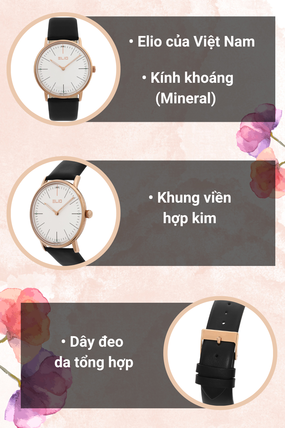 - Đồng hồ Elio với kiểu dáng, mẫu mã năng động, trẻ trung phù hợp với mọi lứa tuổi, đồng thời đồng hồ Elio còn mang vẻ đẹp sang trọng, lịch lãm. Đặc biệt đồng hồ Elio còn sử dụng bộ máy của Nhật Bản với chất lượng và độ bền cao.