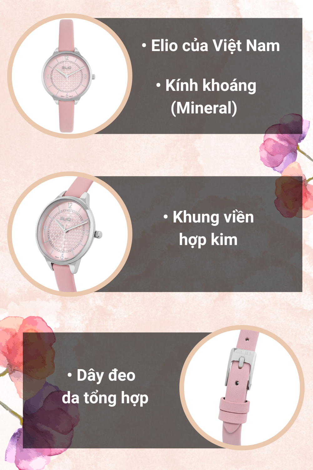 - Đồng hồ Elio với kiểu dáng, mẫu mã năng động, trẻ trung phù hợp với mọi lứa tuổi, đồng thời đồng hồ Elio còn mang vẻ đẹp sang trọng, lịch lãm. Đặc biệt đồng hồ Elio còn sử dụng bộ máy của Nhật Bản với chất lượng và độ bền cao.