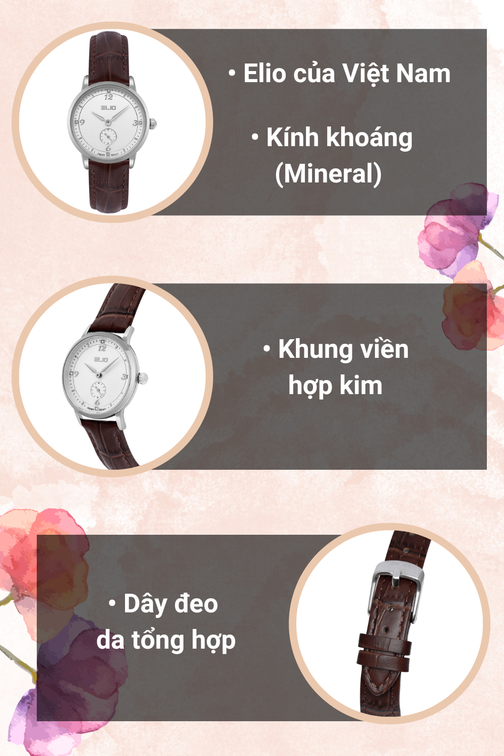 • Đồng hồ ELIO 29 mm Nữ EL110-01 là sản phẩm đến từ hãng đồng hồ Elio chất lượng của Việt Nam - được kinh doanh độc quyền tại Thế Giới Di Động. Đây là một thương hiệu đồng hồ của người Việt nhằm mang đến những sản phẩm đẳng cấp xuất phát từ trong nước cho người tiêu dùng yêu thích thời trang.