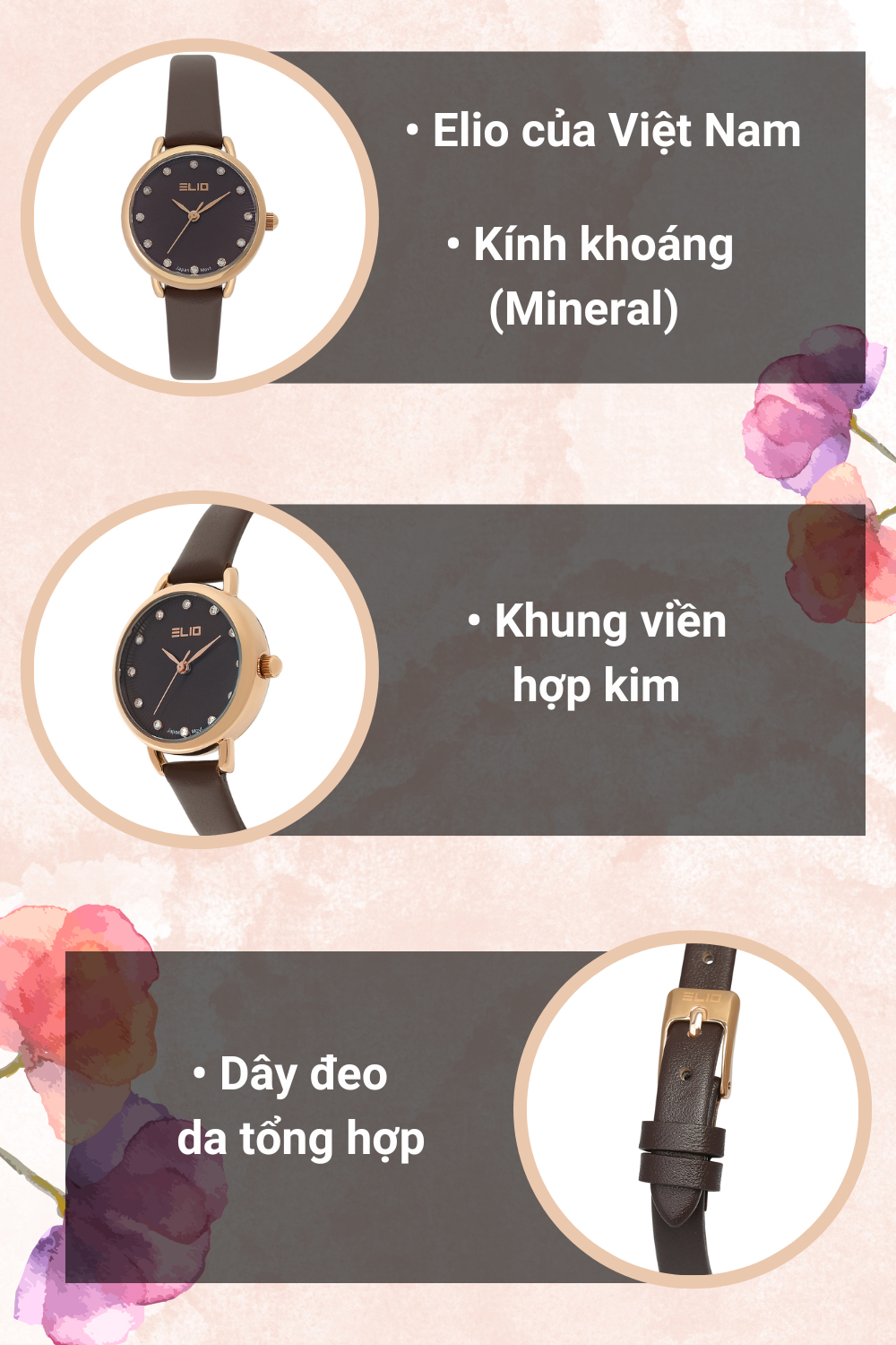 • Mẫu đồng hồ này phù hợp với những cô nàng ưa thích sự tinh tế và năng động. Mẫu đồng hồ này đến từ thương hiệu đồng hồ Elio - thương hiệu độc quyền của Thế Giới Di Động.