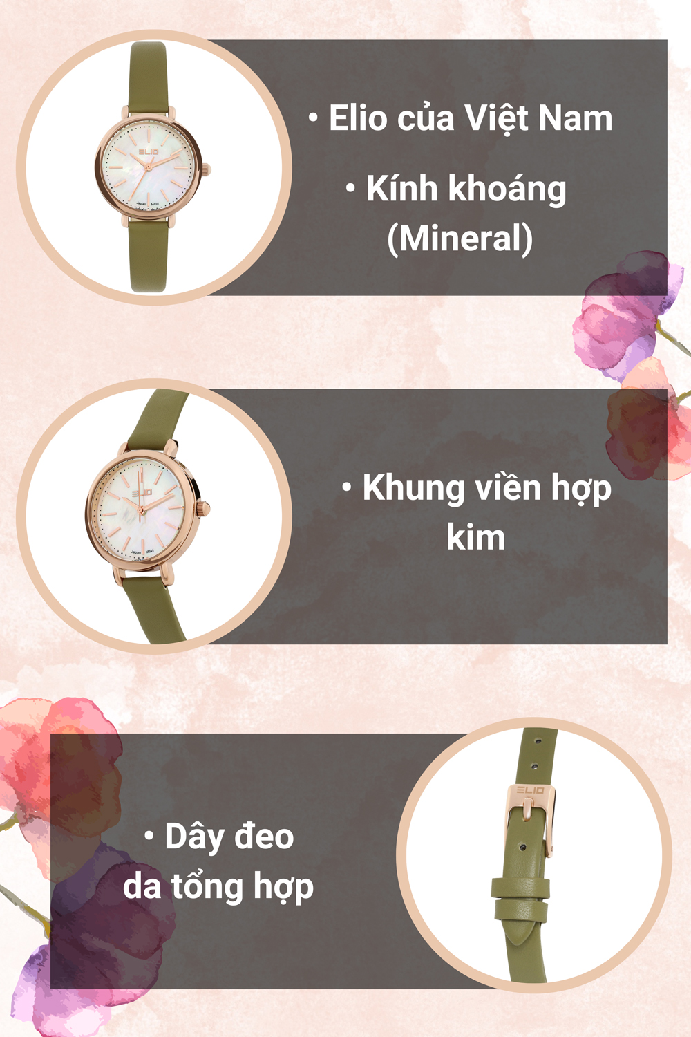 - Đồng hồ Elio với kiểu dáng, mẫu mã năng động, trẻ trung phù hợp với mọi lứa tuổi, đồng thời đồng hồ Elio còn mang vẻ đẹp sang trọng, lịch lãm. Đặc biệt đồng hồ Elio còn sử dụng bộ máy của Nhật Bản với chất lượng và độ bền cao.