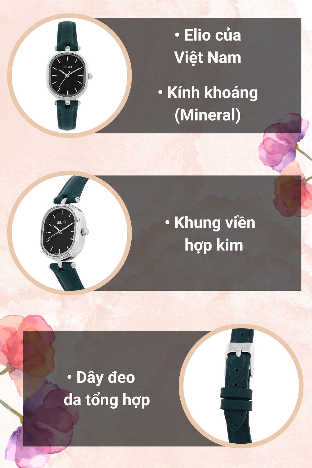 - Đồng hồ Elio với kiểu dáng, mẫu mã năng động, trẻ trung phù hợp với mọi lứa tuổi, đồng thời đồng hồ Elio còn mang vẻ đẹp sang trọng, lịch lãm. Đặc biệt đồng hồ Elio còn sử dụng bộ máy của Nhật Bản với chất lượng và độ bền cao.