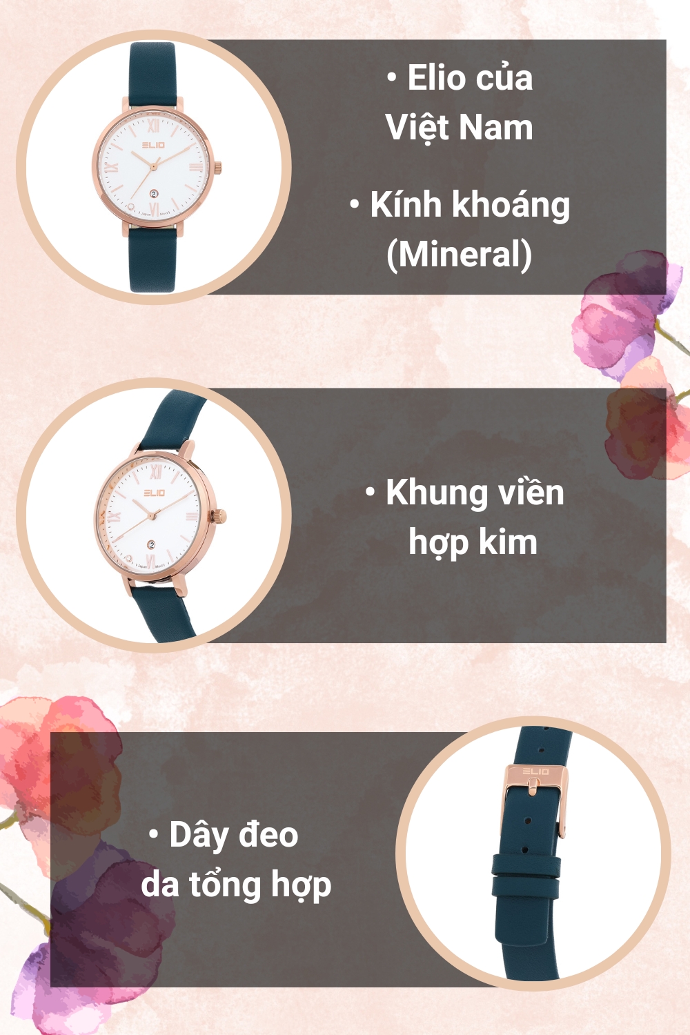 - Đồng hồ Elio với kiểu dáng, mẫu mã năng động, trẻ trung phù hợp với mọi lứa tuổi, đồng thời đồng hồ Elio còn mang vẻ đẹp sang trọng, lịch lãm. Đặc biệt đồng hồ Elio còn sử dụng bộ máy của Nhật Bản với chất lượng và độ bền cao.