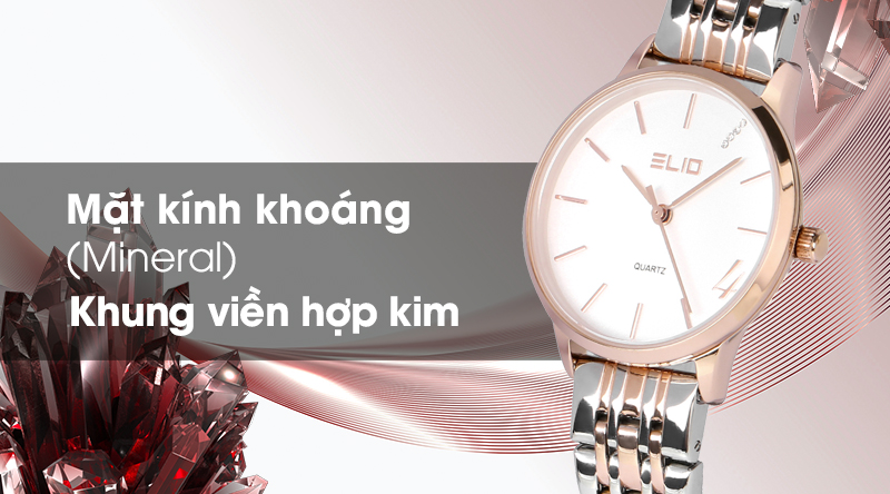 - Mặt kính của chiếc đồng hồ Elio nữ này có độ cứng khá, độ trong suốt cao, chịu lực tốt.