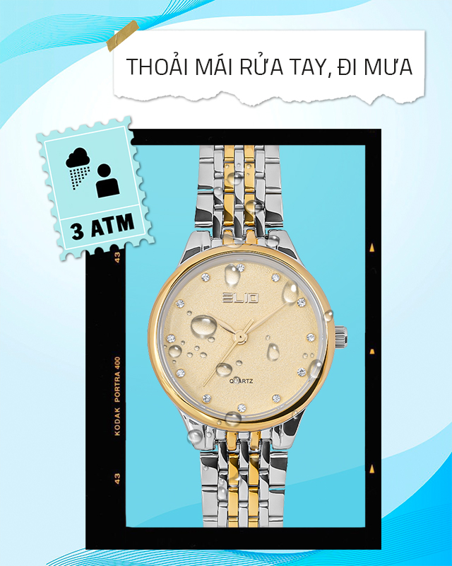 - Chỉ số chống nước 3 ATM: yên tâm đeo đồng hồ khi đi mưa, rửa tay, không mang khi tắm, bơi, lặn
