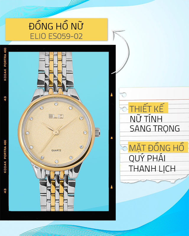 - Đồng hồ ELIO Nàng Thơ 27 mm Nữ ES059-02 có phần dây đeo hợp kim bền chắc, khung viền hợp kim cứng cáp, sáng bóng