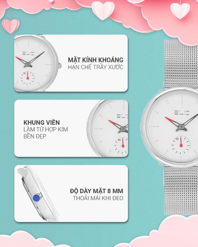 - Khung viền hợp kim bền đẹp, dây đeo dạng thép lưới có độ bền cao nhưng vẫn đem lại cảm giác nhẹ nhàng