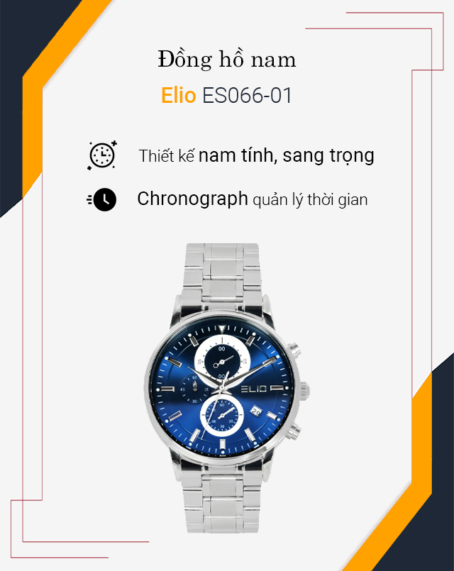- Đồng hồ Elio với kiểu dáng, mẫu mã năng động, trẻ trung phù hợp với mọi lứa tuổi, đồng thời đồng hồ Elio còn mang vẻ đẹp sang trọng, lịch lãm. Đặc biệt đồng hồ Elio còn sử dụng bộ máy của Nhật Bản với chất lượng và độ bền cao.