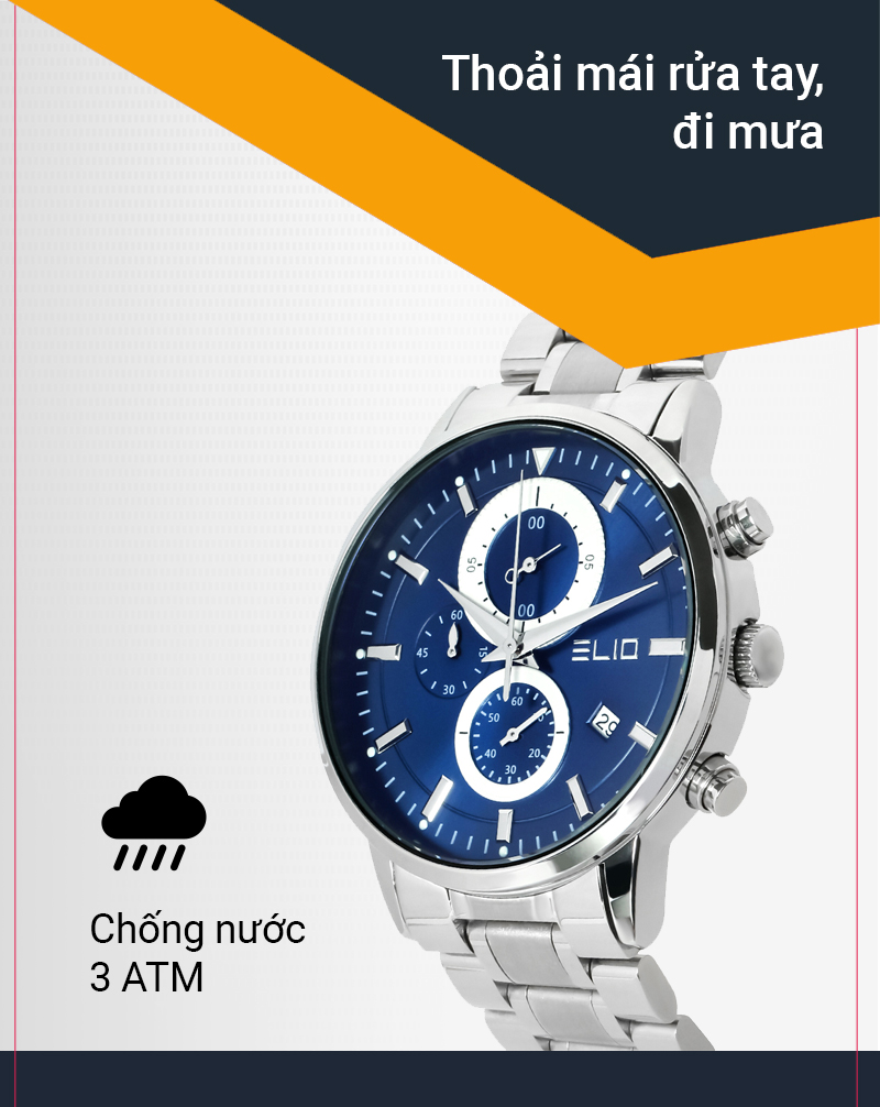 - Chống nước 3 ATM: Yên tâm đeo mẫu đồng hồ nam này khi rửa tay, đi mưa, không mang khi tắm, bơi, lặn