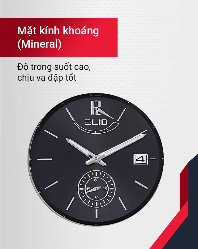 - Đồng hồ Elio với kiểu dáng, mẫu mã năng động, trẻ trung phù hợp với mọi lứa tuổi, đồng thời đồng hồ Elio còn mang vẻ đẹp sang trọng, lịch lãm. Đặc biệt đồng hồ Elio còn sử dụng bộ máy của Nhật Bản với chất lượng và độ bền cao.