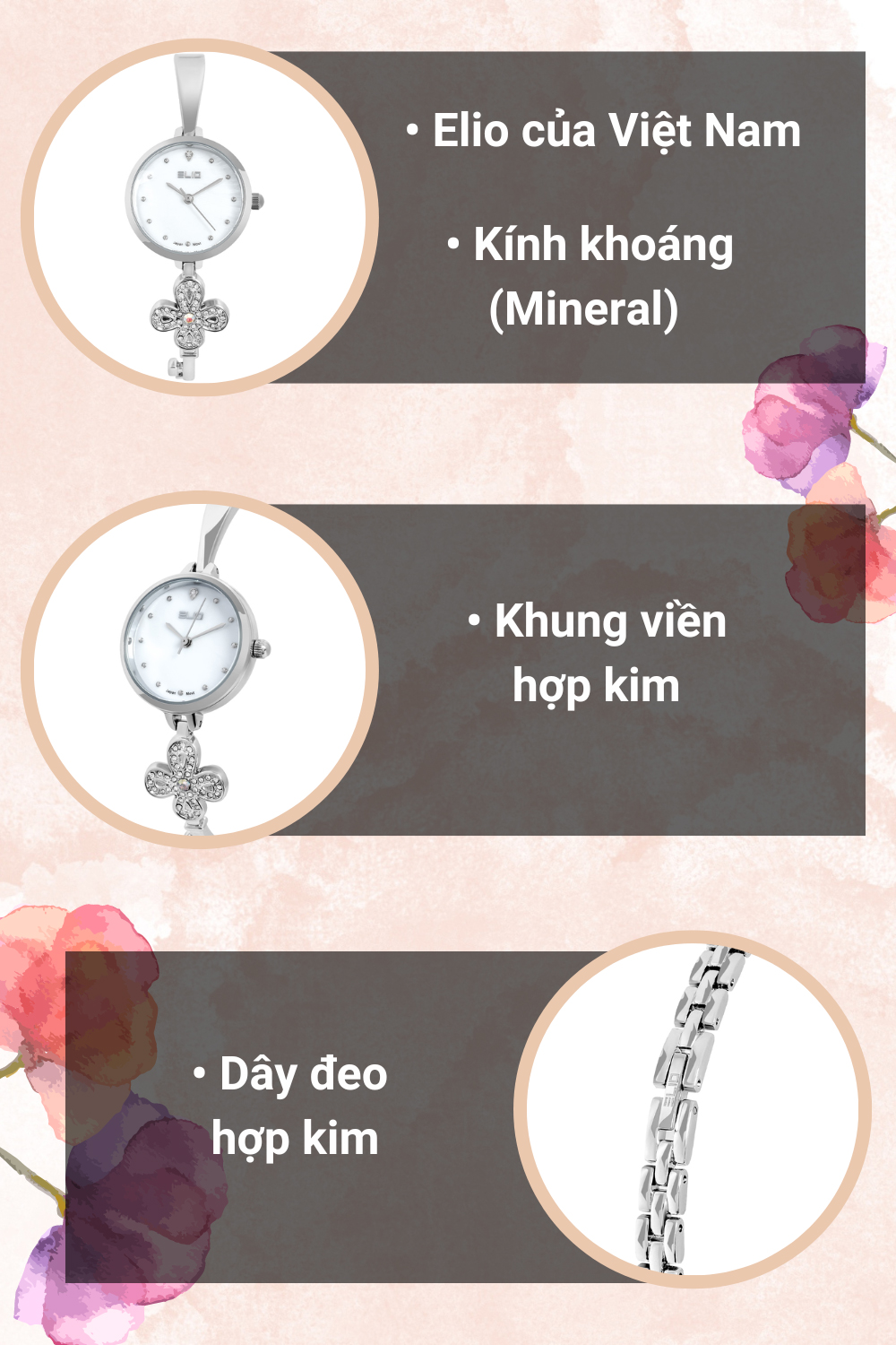 - Một thiết kế nữ tính, nhẹ nhàng đến từ thương hiệu đồng hồ Elio độc quyền của Thế Giới Di Động