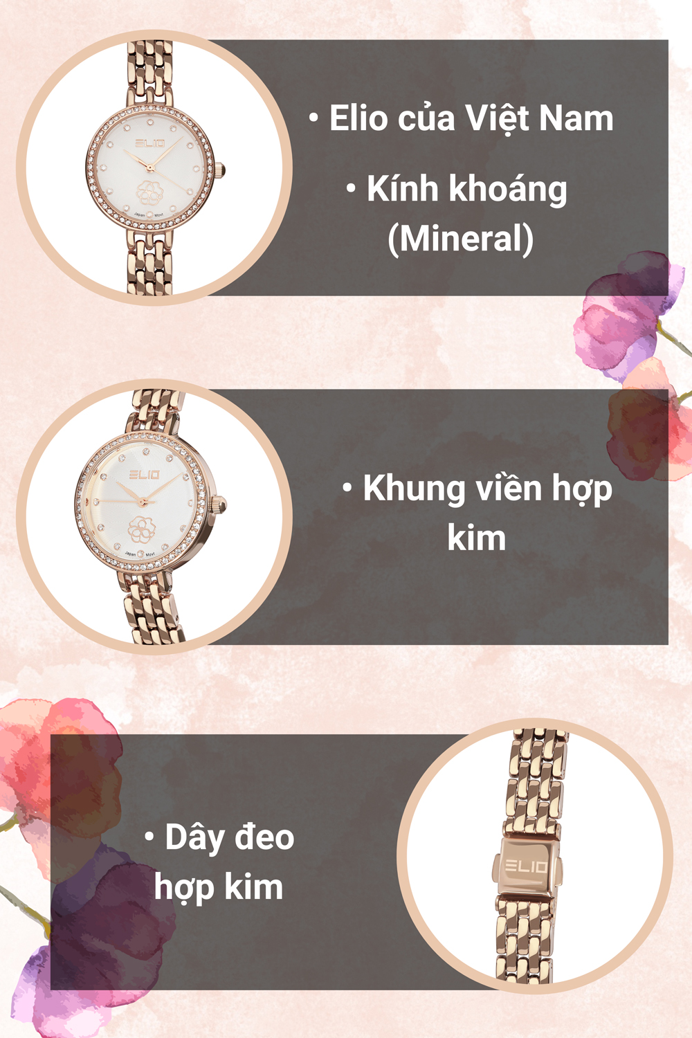 Đánh giá Đồng hồ Elio Flower 28 mm Nữ ES133-02