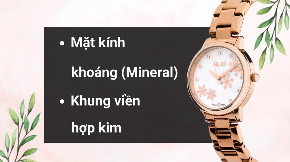- Đồng hồ Elio với kiểu dáng, mẫu mã năng động, trẻ trung phù hợp với mọi lứa tuổi, đồng thời đồng hồ Elio còn mang vẻ đẹp sang trọng, lịch lãm. Đặc biệt đồng hồ Elio còn sử dụng bộ máy của Nhật Bản với chất lượng và độ bền cao.