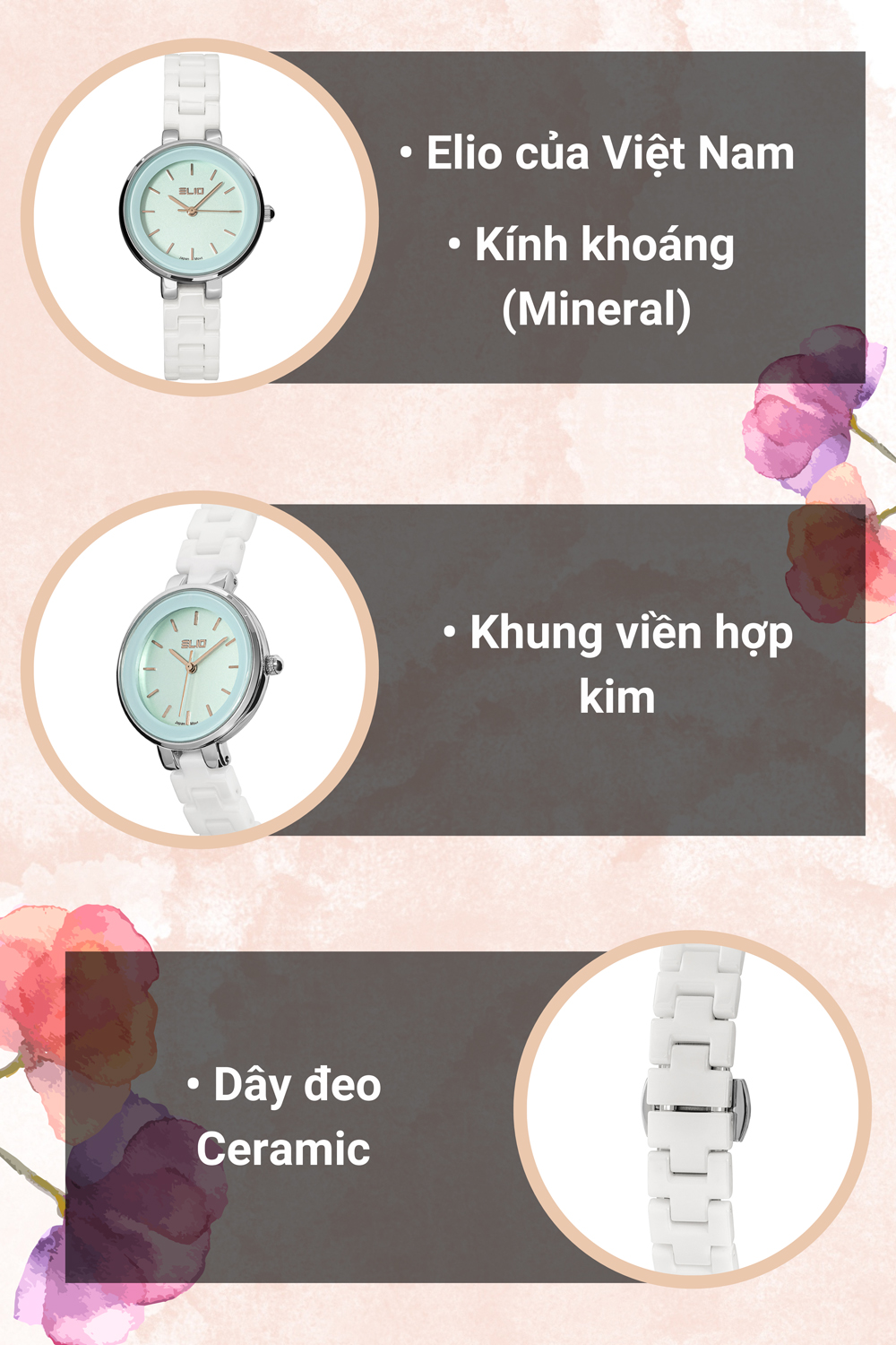 - Đồng hồ Elio với kiểu dáng, mẫu mã năng động, trẻ trung phù hợp với mọi lứa tuổi, đồng thời đồng hồ Elio còn mang vẻ đẹp sang trọng, lịch lãm. Đặc biệt đồng hồ Elio còn sử dụng bộ máy của Nhật Bản với chất lượng và độ bền cao.