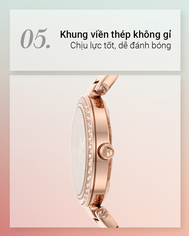 - Khung viền và dây đeo làm bằng thép không gỉ, độ bền cao, chịu lực tốt, chống bám bẩn hiệu quả