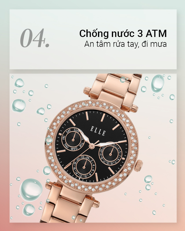 - Độ chống nước 3 ATM: Yên tâm đeo khi đi mưa, rửa tay, không mang khi tắm hay bơi lội