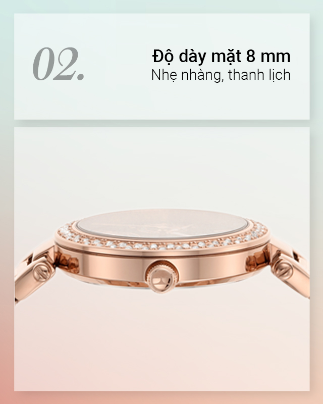- Chiếc đồng hồ nữ này có đường kính mặt 33 mm, độ rộng dây 16 mm