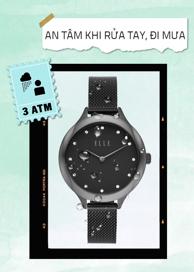- Thoải mái đeo đồng hồ đi mưa hay rửa tay với độ chống nước 3 ATM, không nên mang khi tắm, bơi lội