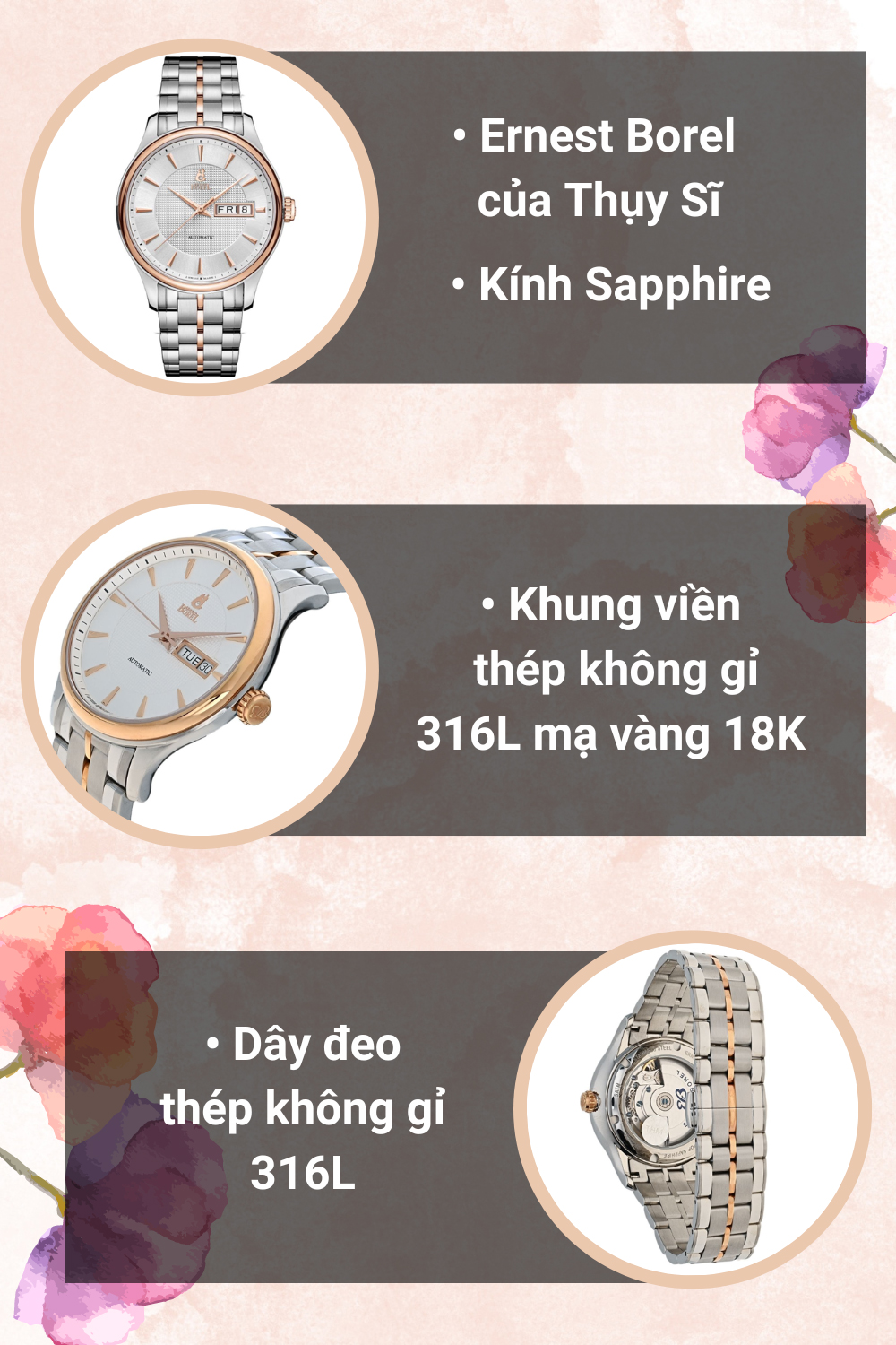 - Thương hiệu đồng hồ Ernest Borel uy tín và nổi tiếng của Thụy Sĩ, được nhiều người tin dùng