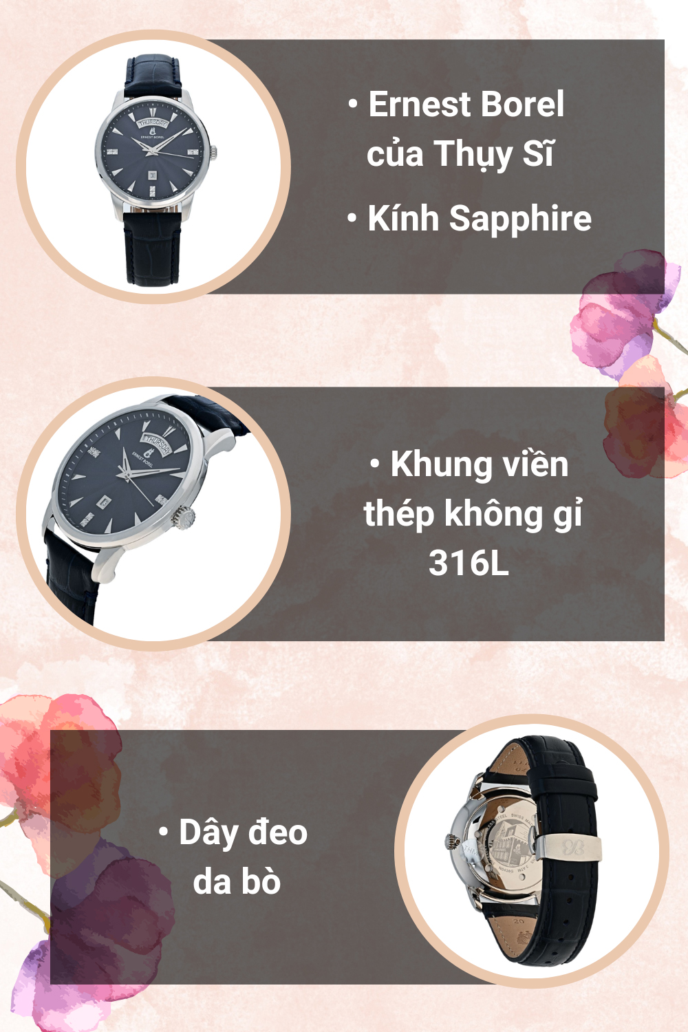 - Sản phẩm của thương hiệu đồng hồ Ernest Borel uy tín và chất lượng của Thụy Sĩ, được nhiều người tin dùng