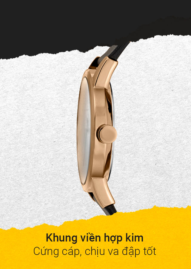 - Được trang bị khung viền hợp kim cứng cáp, sáng bóng, sang trọng và dây da mềm mại, thoải mái khi đeo