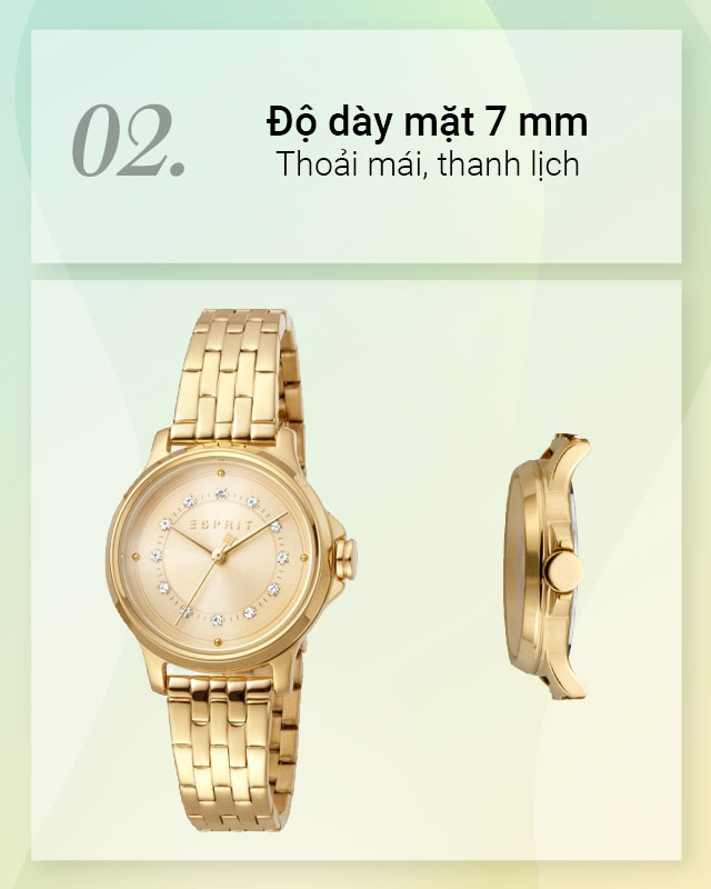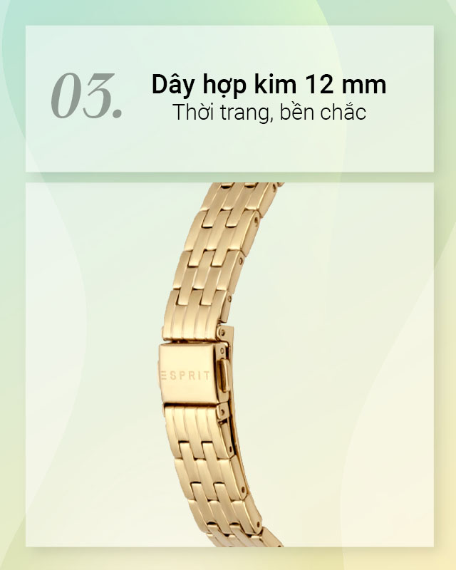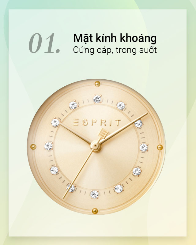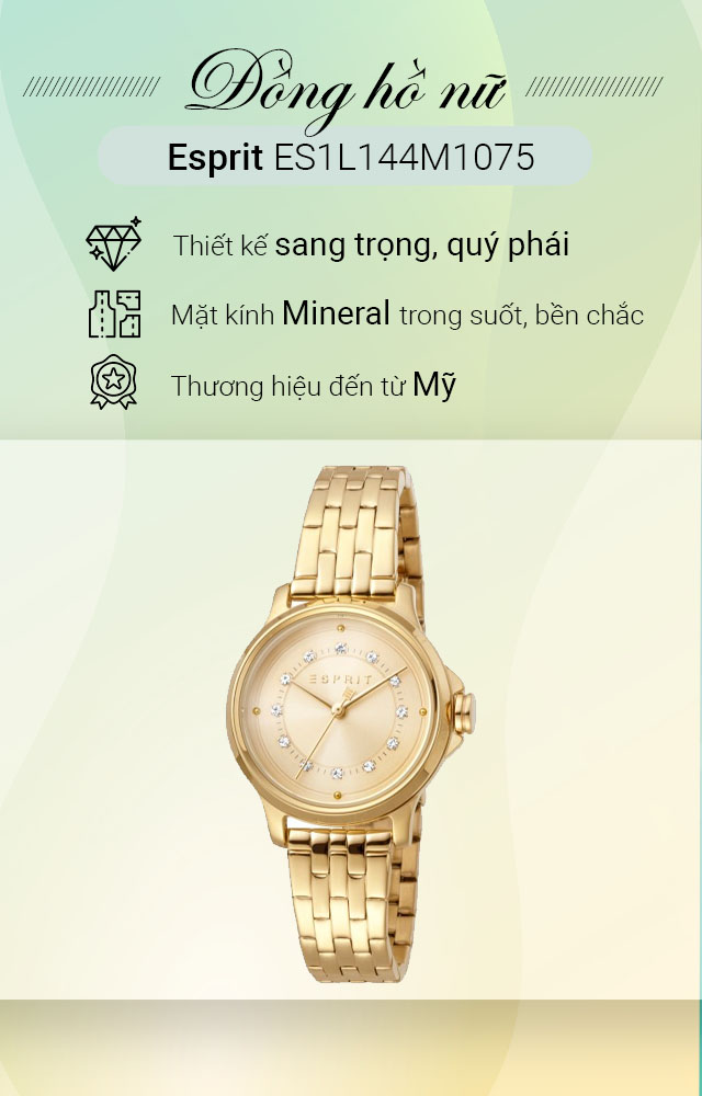 - Là sản phẩm có thiết kế tinh tế, nữ tính đến từ thương hiệu đồng hồ Esprit, hãng đồng hồ nổi tiếng của Mỹ