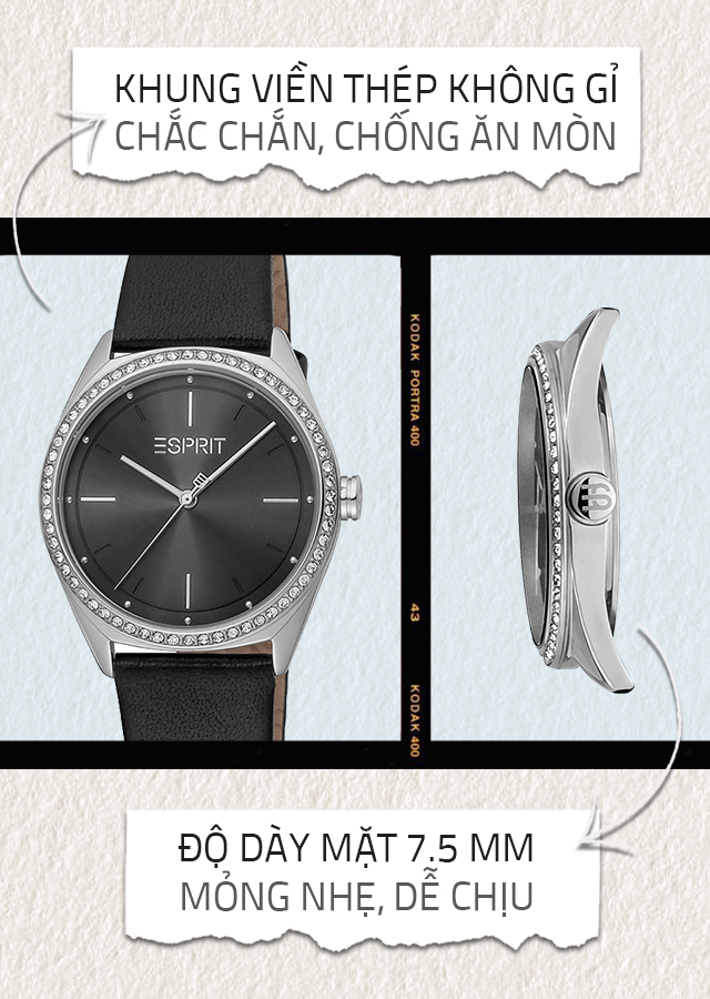 Đồng hồ Nữ Esprit ES1L289L0115 có khung viền chắc chắn và độ dày mặt 7.5 mm