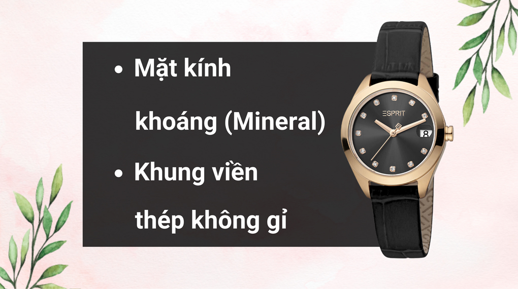 • Một trong những sản phẩm nổi bật là đồng hồ Esprit 30 mm Nữ ES1L295L0055 với thiết kế lấp lánh từ cọc số được đính những viên đá quý, tạo nên vẻ đẹp cuốn hút. Các viên đá không chỉ thể hiện sự thanh lịch và nữ tính mà còn làm tăng thêm sự sang trọng cho người đeo.