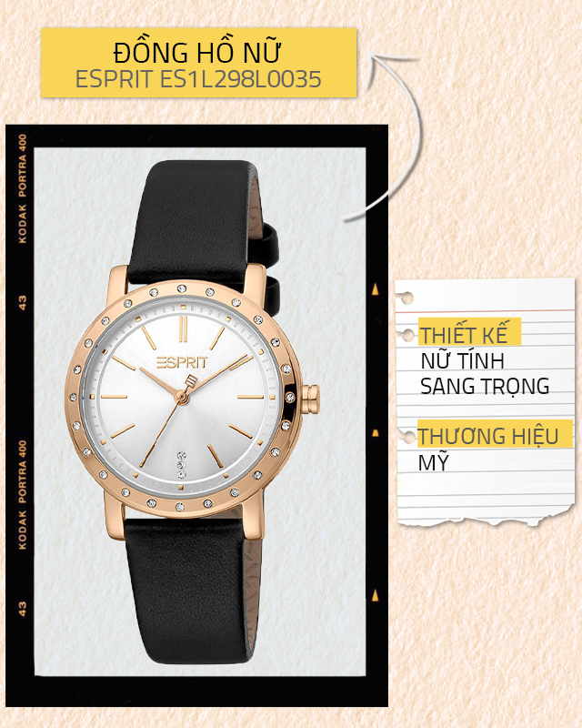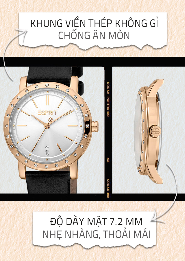 - Kiểu dáng hiện đại nổi bật của những mẫu đồng hồ Esprit đến từ Mỹ. Sản phẩm này được bán kèm lắc tay.