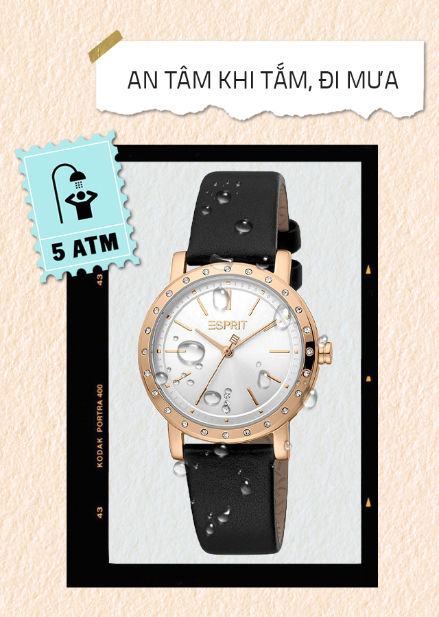 - Hệ số chống nước trên mẫu đồng hồ nữ này là 5 ATM nên bạn có thể yên tâm đeo khi tắm và đi mưa, không nên mang đi bơi hoặc lặn.