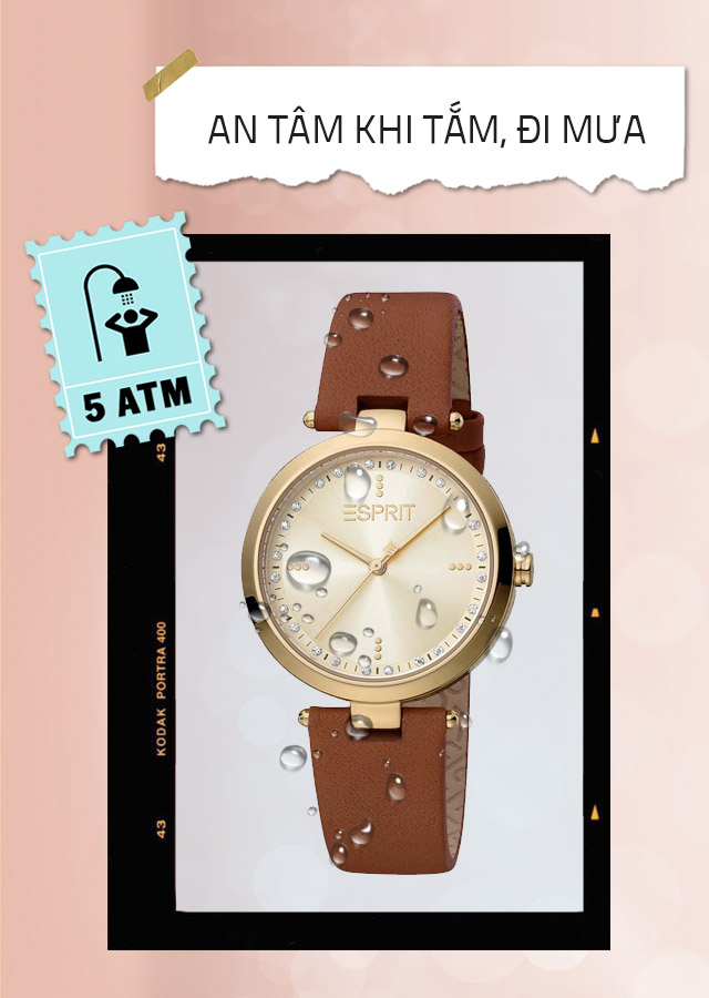 - Hệ số chống nước của đồng hồ là 5 ATM tự tin sử dụng khi đi tắm, đi mưa và rửa tay nhưng nên hạn chế mang theo khi tham gia bơi, lặn