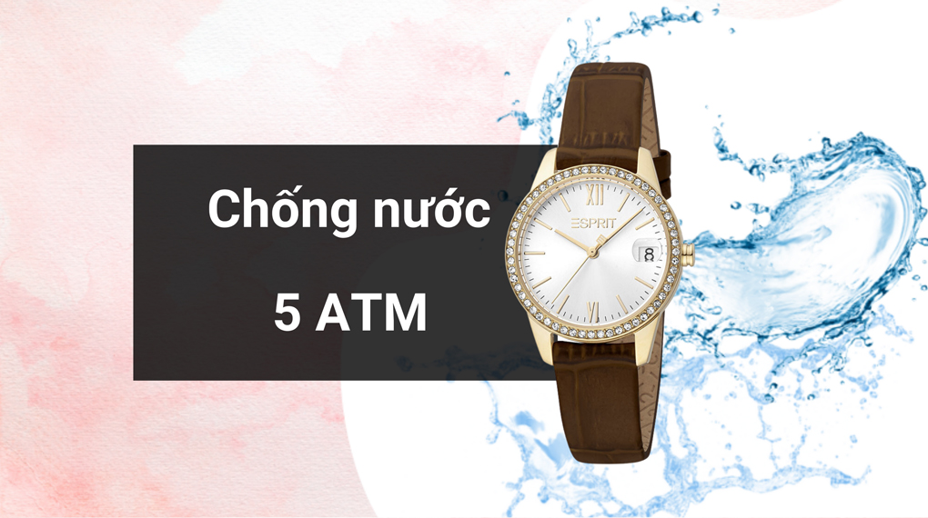 • Hệ số chống nước 5 ATM cho phép đồng hồ nữ này của bạn tiếp xúc được với nước khi rửa tay, đi tắm hoặc đeo đồng hồ trong các hoạt động thể thao nhẹ nhàng. Lưu ý: không đeo đồng hồ khi đi bơi, lặn.