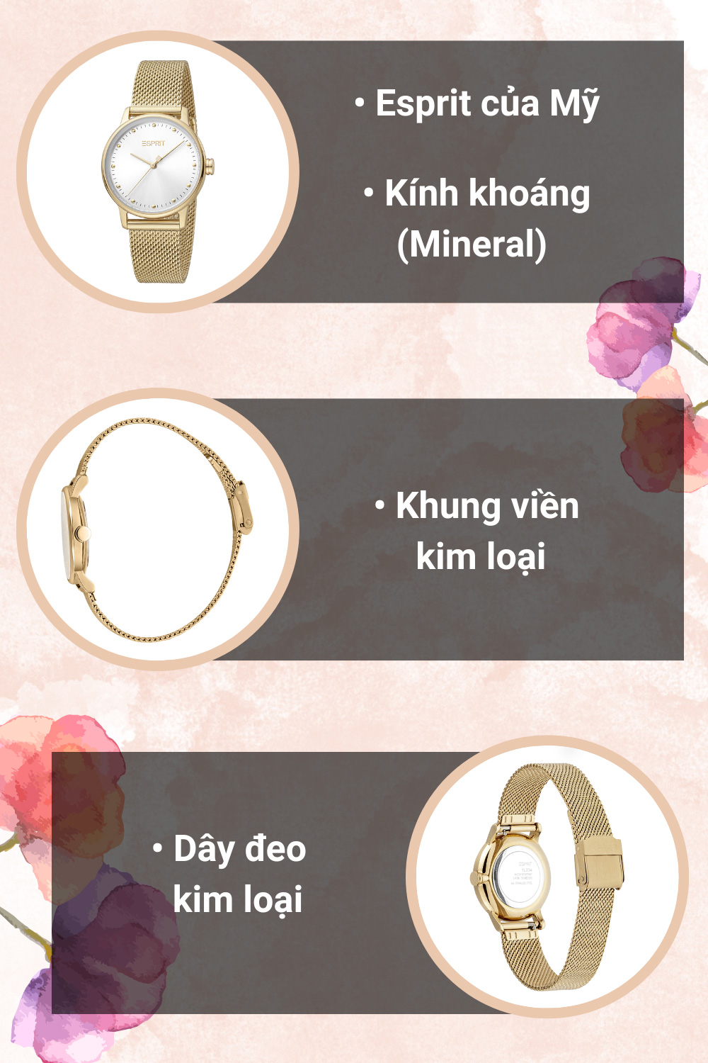 • Đồng hồ ESPRIT 32 mm Nữ ES1L334M0035 với thiết kế tinh tế. Đồng hồ Esprit đến từ Mỹ gây ấn tượng với kiểu thiết kế sang trọng và trang nhã.