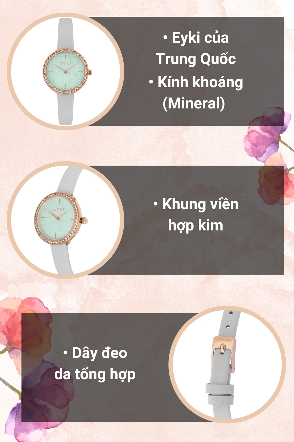 - Đồng hồ Eyki đa dạng mẫu mã, đi đôi với các kiểu dáng đơn giản, trẻ trung phù hợp với mọi lứa tuổi, đồng thời đồng hồ Eyki còn mang vẻ đẹp thanh lịch, nhẹ nhàng và sang trọng.