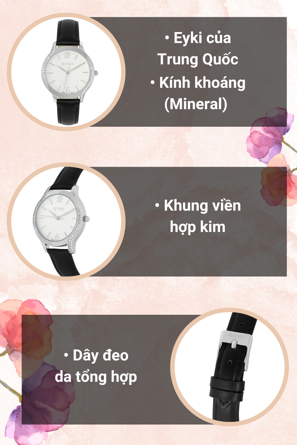 - Đồng hồ Eyki đa dạng mẫu mã, đi đôi với các kiểu dáng đơn giản, trẻ trung phù hợp với mọi lứa tuổi, đồng thời đồng hồ Eyki còn mang vẻ đẹp thanh lịch, nhẹ nhàng và sang trọng.