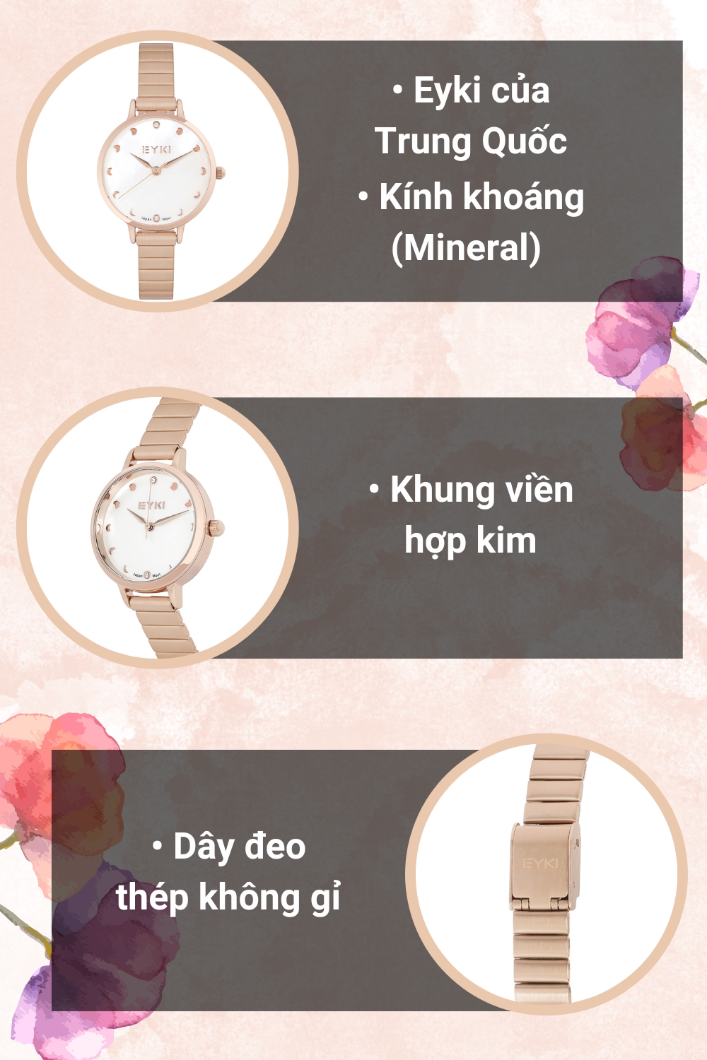 - Đồng hồ Eyki đa dạng mẫu mã, đi đôi với các kiểu dáng đơn giản, trẻ trung phù hợp với mọi lứa tuổi, đồng thời đồng hồ Eyki còn mang vẻ đẹp thanh lịch, nhẹ nhàng và sang trọng.