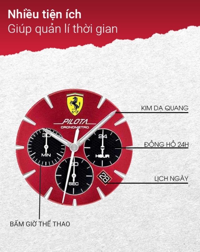 - Mẫu đồng hồ nhà Ferrari này có đường kính mặt 48 mm