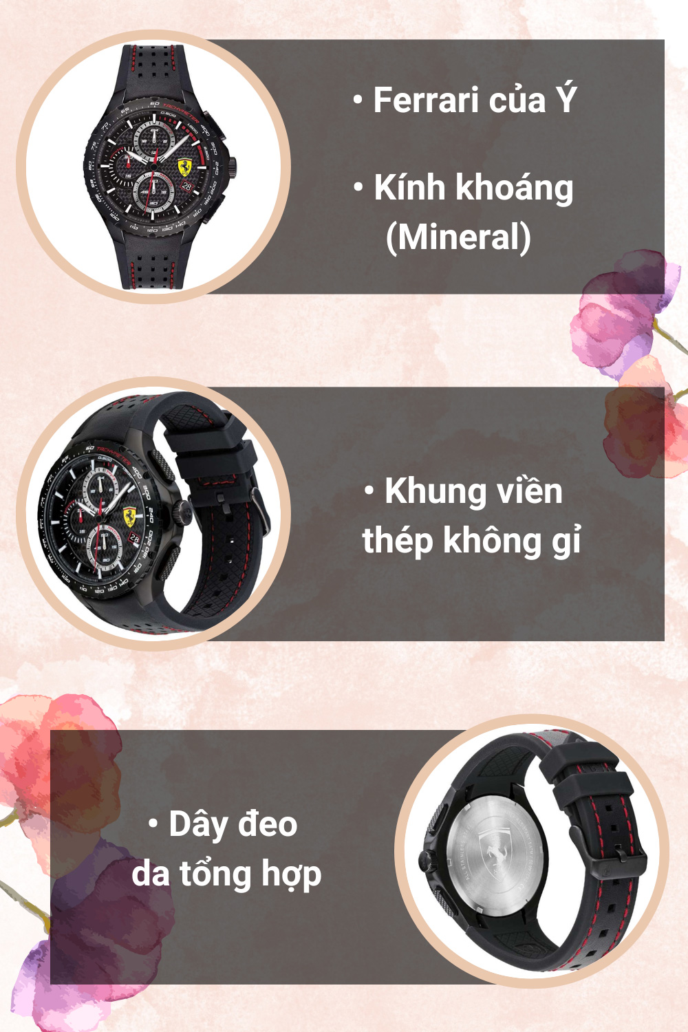 - Mang nét cá tính, hiện đại, chiếc đồng hồ này đến từ thương hiệu đồng hồ Ferrari chất lượng và uy tín của Ý