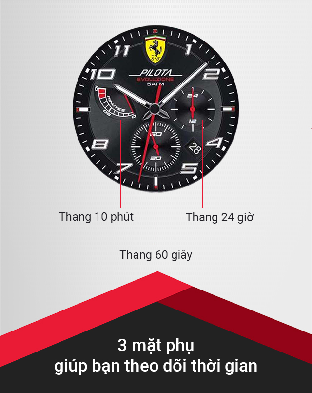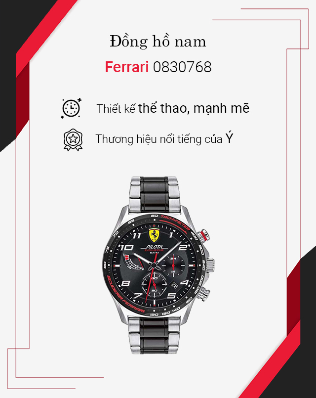 - Thương hiệu đồng hồ Ferrari đến từ Ý, nổi tiếng với phong cách thiết kế thể thao mạnh mẽ