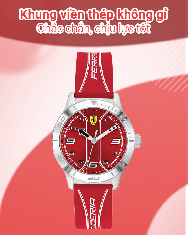 - Thiết kế ấn tượng, mạnh mẽ, đẳng cấp, lấy cảm hứng từ những siêu xe của họ, đồng hồ Ferrari là bộ sưu tập không thể thiếu đối với những bạn trẻ có niềm đam mê về tốc độ. Tất cả các quá trình làm nên chiếc đồng hồ từ thiết kế có đến lắp ráp đều được hãng theo dõi gắt gao để mang đến người dùng một sản phẩm chỉnh chu và hoàn thiện nhất đến từng chi tiết.